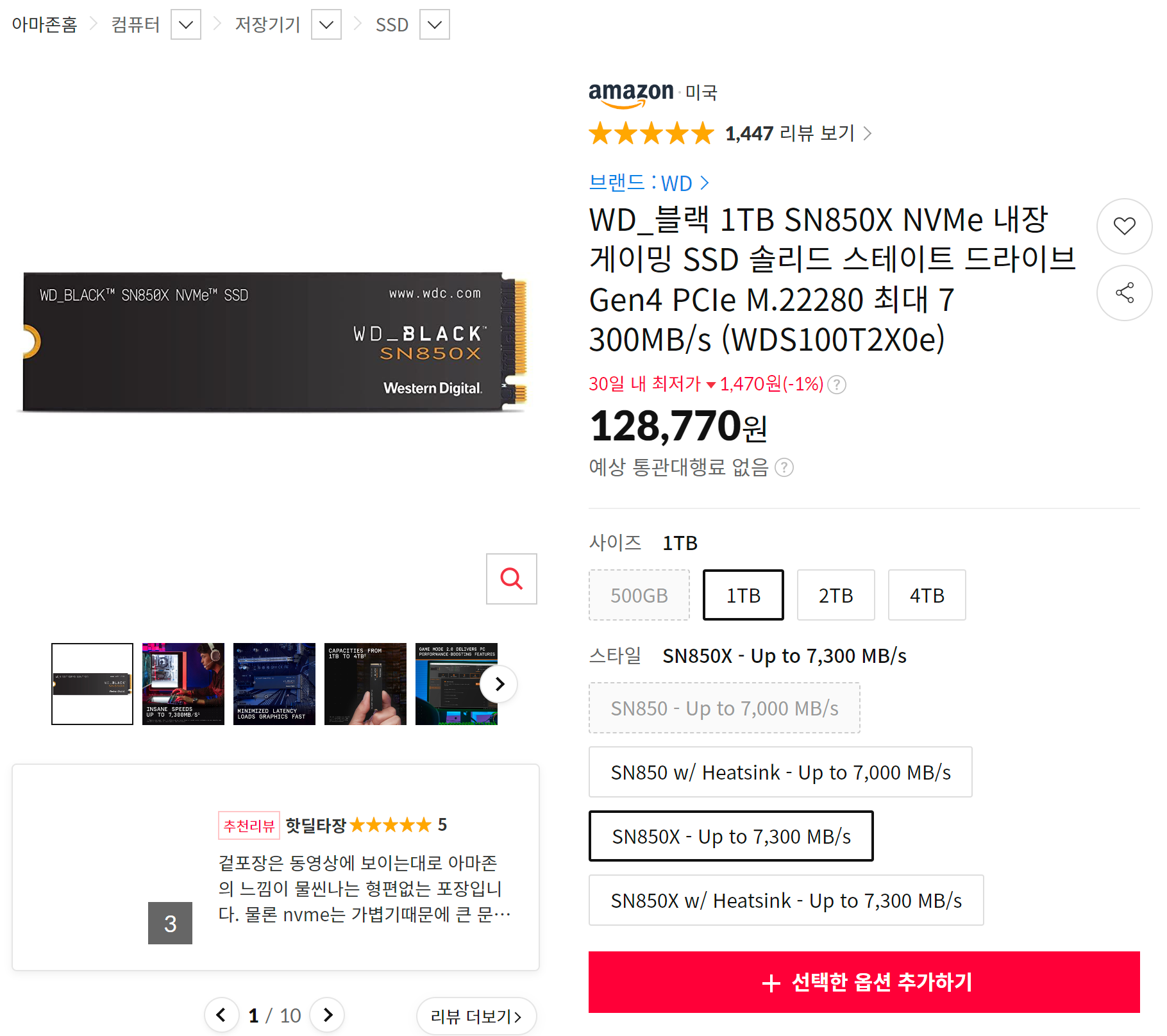 제가 구입할 때만 해도 아마존에서는 10만 원 중후반대의 가격이 정가였는데, 지금은 11마존에서 그냥 128,770원이네요. 국내 수입 정가는 아직 가격이 높습니다.