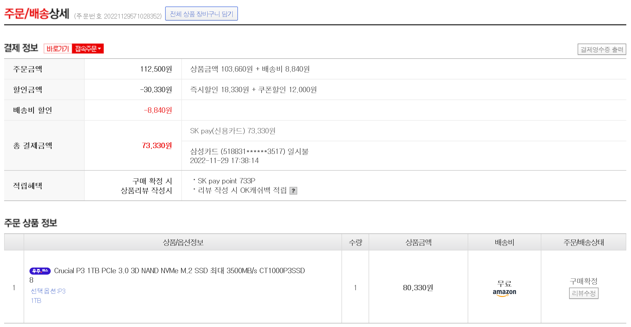 처음에 11마존 플프 행사 때 구매한 제품이 WD SN850X 1TB 제품입니다. 11월에 노트북 관련 행사가 많아서 할인가가 높지만 사양이 부족한(SSD, RAM 등)을 구매해서 부족한 사양을 추가 부품으로 교체할 요량으로 구입했습니다.
