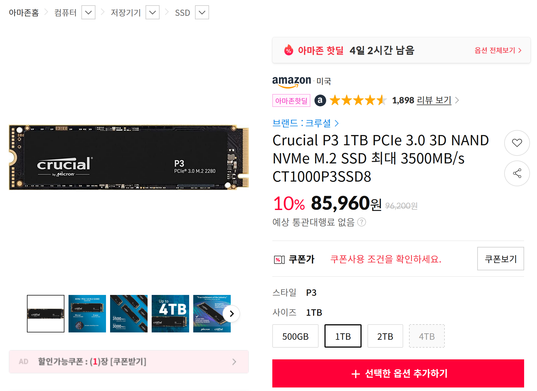 | [11번가 아마존] WD SN850X 1TB, 115,200원, 22년11월26일 (0) | 2023.01.08 |
