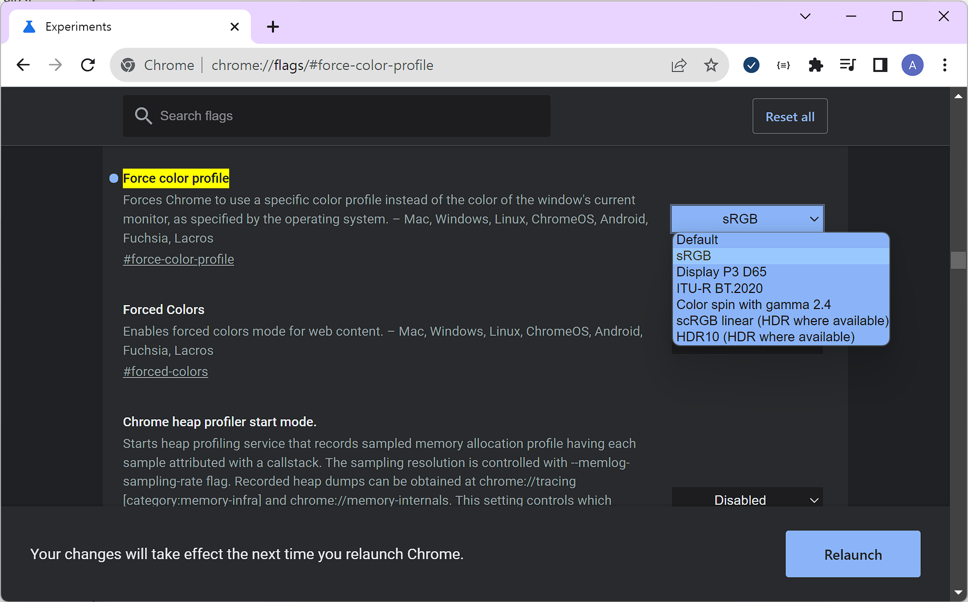 LG 32UN650 모니터를 구매하고 HDR 옵션을 켠 뒤로 보기 시작한 현상으로, HDR을 켜면 크롬에서는 Default color profile로 동작하도록 설정되어 있어서, color profile이 꼬이는 현상입니다.