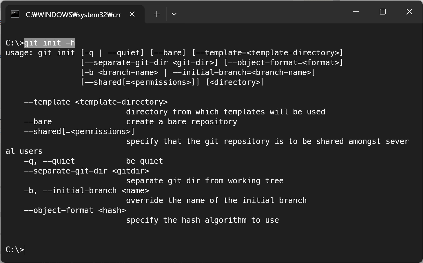 $ git [git command] -h