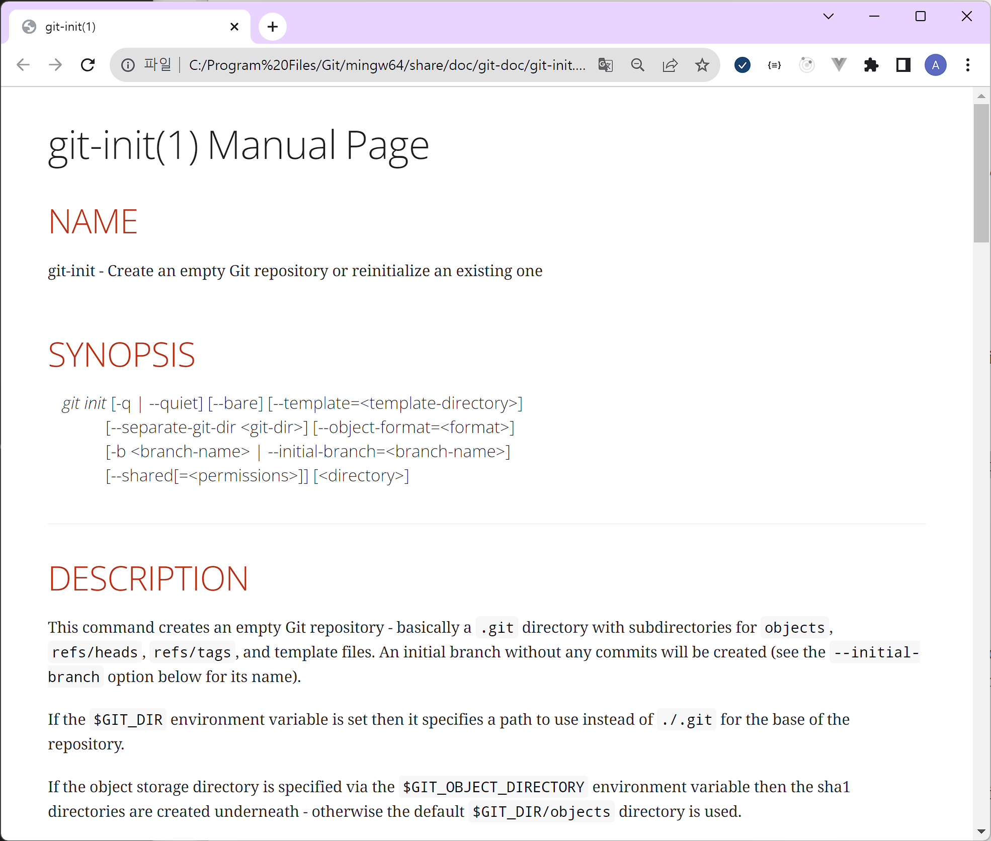 이 명령은 윈도즈에서는 브라우저 창으로 떠서 확인할 수 있습니다.