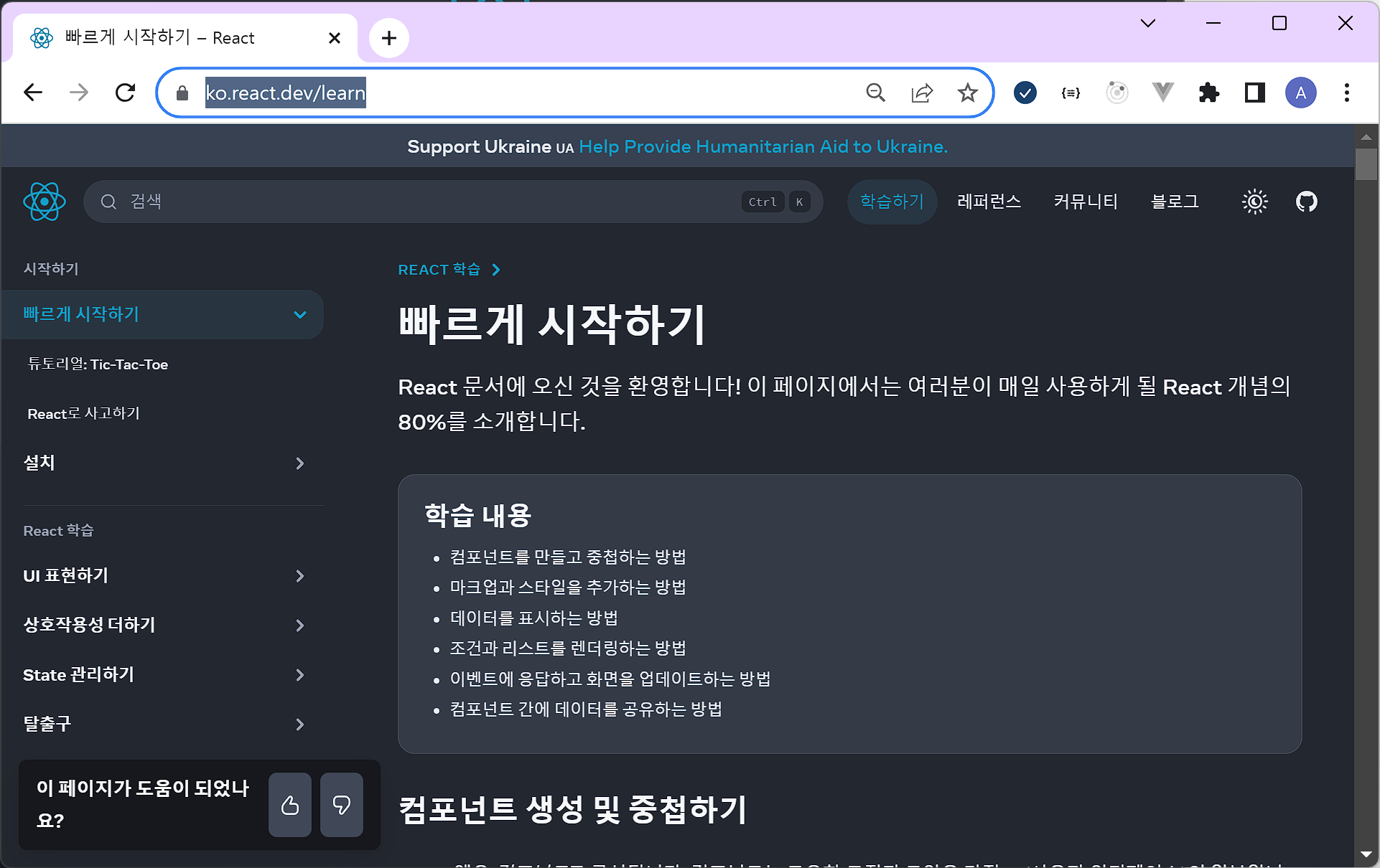 1. React 한글 번역 공식 사이트