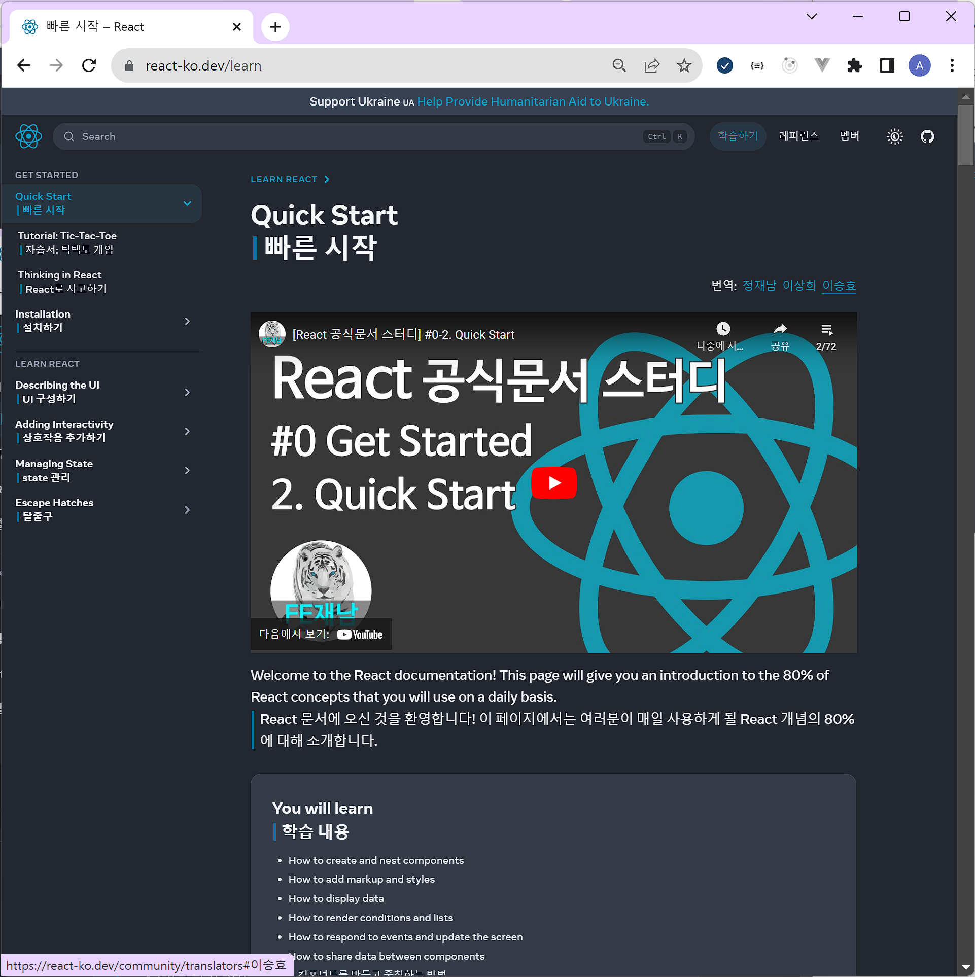 2. React 한글 번역 비공식 사이트