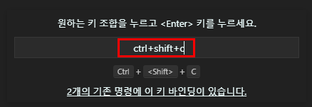 기존에 바인딩 되어 있는 단축키 목록도 열람할 수 있으니 여러 가지 키를 조합해서 본인이 원하는 기능과 겹치지 않는 단축키를 선택하면 됩니다.