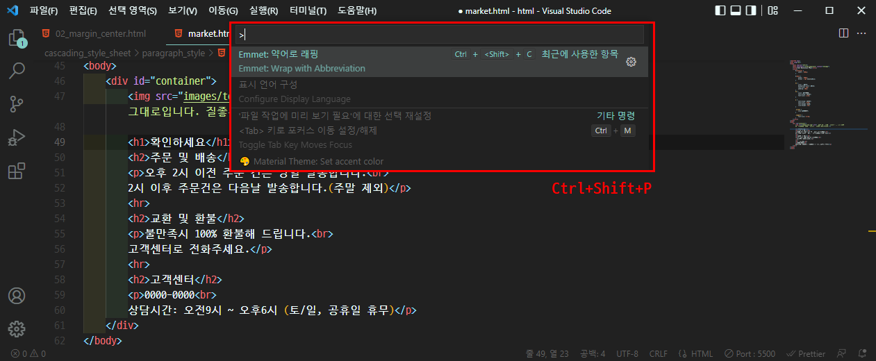 1.3 Emmet: 약어로 래핑 ( Emmet: Wrap with Abbreviation )