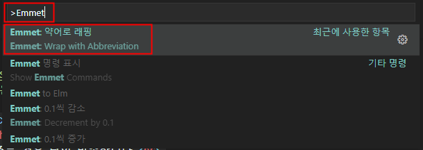Emmet: 약어로 래핑을 한 번 사용하고 나면 다른 항목을 사용하기 전까지 계속 최근에 사용한 항목으로 조회됩니다.