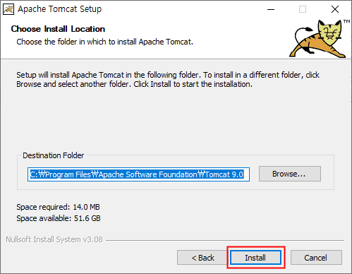 설치할 폴더를 변경할 수 있습니다. Browse... 버튼을 클릭해 변경하고 Install을 클릭하여 설치를 시작합니다. 저는 기본 설치 폴더 그대로 진행했습니다.