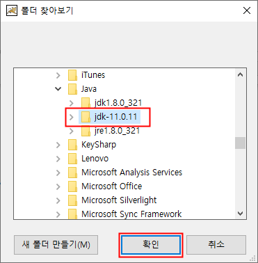 저는 JDK 1.8과 JDK 11이 설치되어 있는데 JDK 11을 선택하였습니다.
