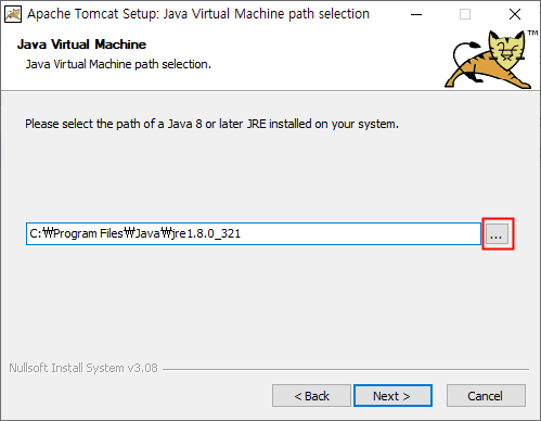 ... 버튼을 눌러 JVM을 선택할 수 있습니다.