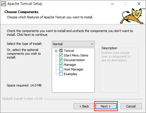 다운로드 폴더에서 'apache-tomcat-9.0.62.exe' 파일을 더블 클릭해 설치를 시작합니다.