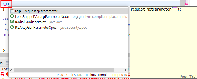 간단한 예로 request.getParameter 함수를 rgp 라는 이름(Name)으로 등록해 봤습니다.