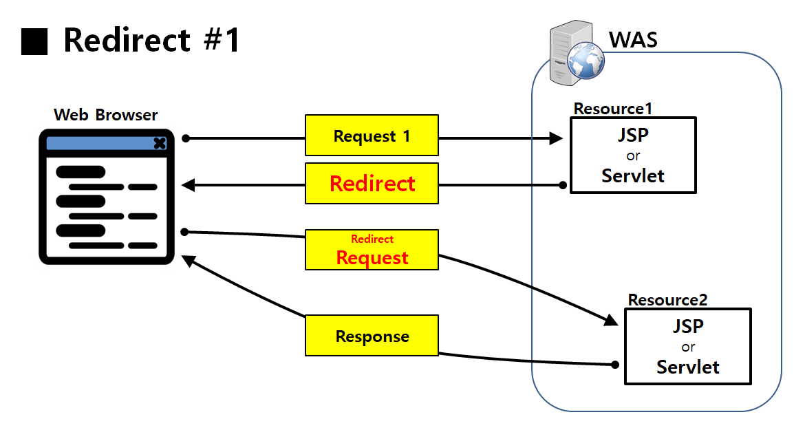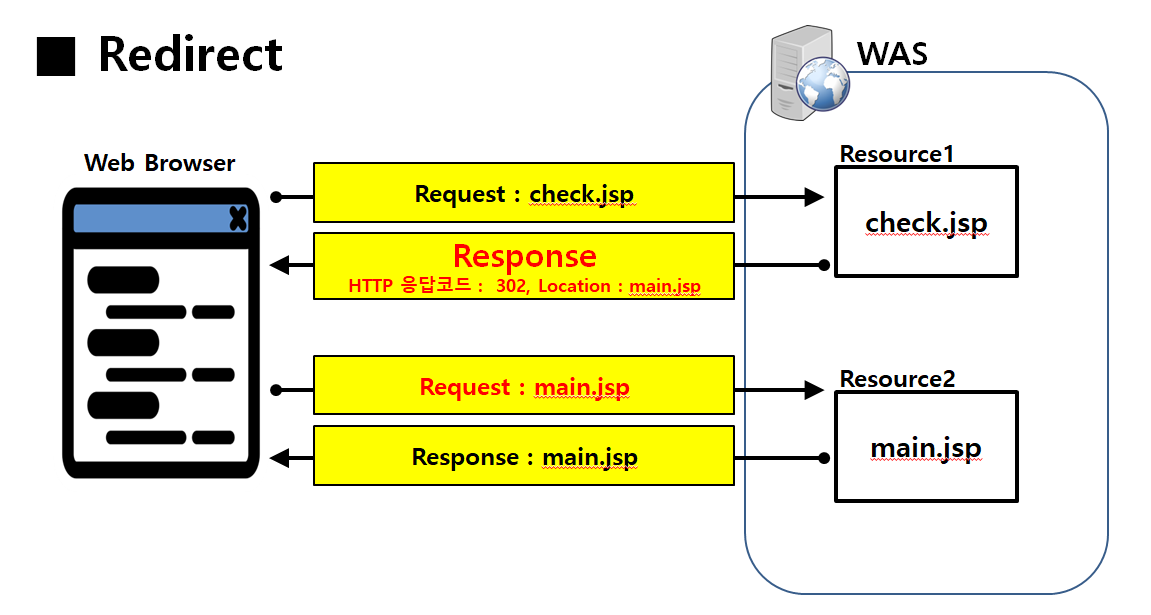 Response 처리의 주체는 Web Browser WAS에서 받은 Response로 새로운 URL을 Request. |