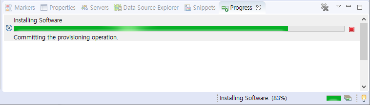 화면 하단에 Progress 탭에서 설치 중인 내역과 진행률을 확인할 수 있습니다.