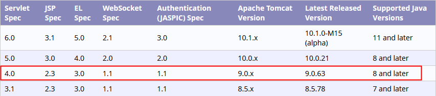 제가 설치하고 사용하고 있는 tomcat은 9.0 버전입니다. 그때 tomcat의 요구사항을 확인하면서 같이 확인한 것이 있네요. tomcat의 모든 버전별 요구사항은 아래와 같습니다.