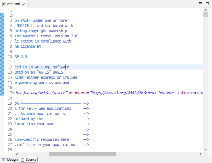 이클립스에서 web.xml을 편집하다가 자동 줄바꿈 설정이 되어 있지 않아서 보기에 불편함을 느꼈습니다. 편집기에서 자동 줄바꿈 설정이 있을 것으로 검색해봤는데 의외의 곳에 숨겨져 있었습니다.