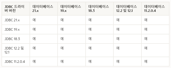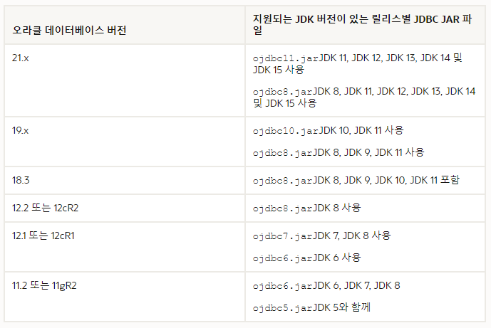 | Oracle Database version | JDBC file 및 JDK |