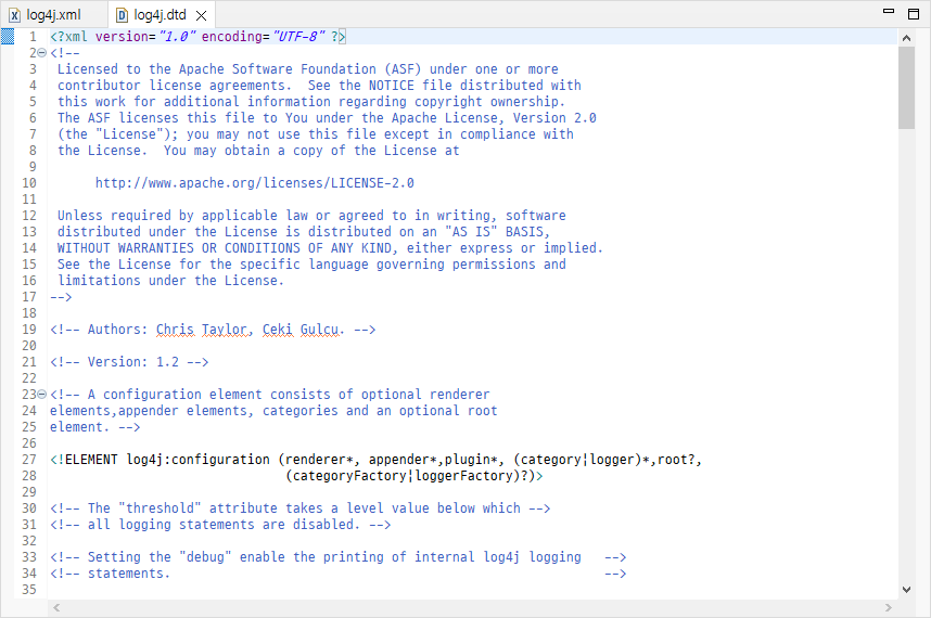 더블 클릭하면 log4j.dtd 파일을 열 수 있습니다.