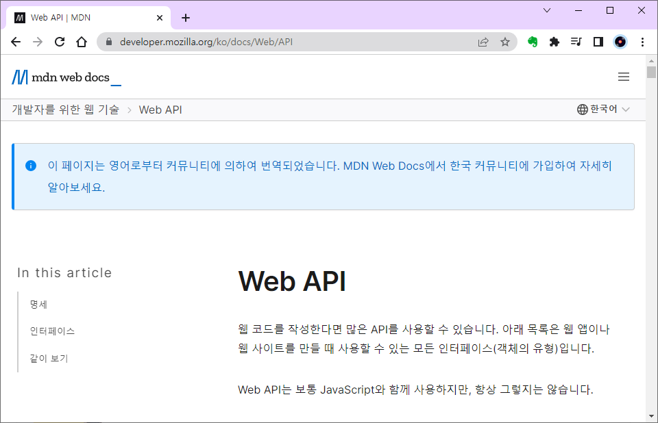 - 공식 사이트처럼 이용할 수 있으며 보다 보기 편리하고 예제도 충실한 홈페이지