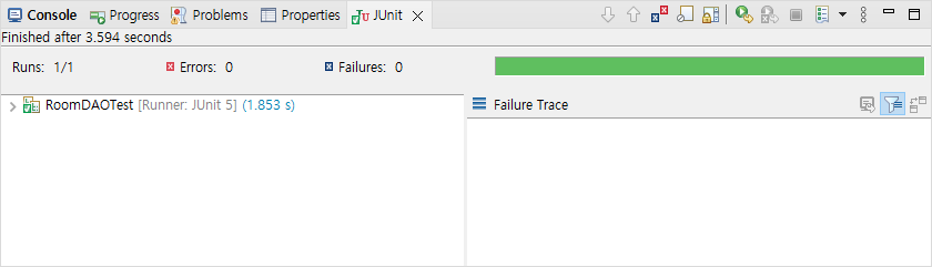 위 설정은 JUnit4 관련 클래스를 로딩하여 테스트 코드를 작성하고 수행하였습니다.