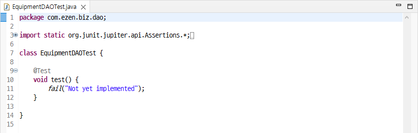 import 파일을 살펴보면 org.junit.jupiter.*를 사용하고 있습니다. JUnit5에서 사용하는 라이브러리입니다.