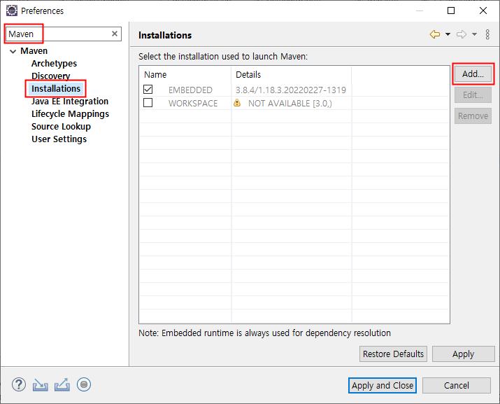 Maven을 설치했다면 아래와 같이 실행환경을 등록하여 사용할 수 있습니다만.