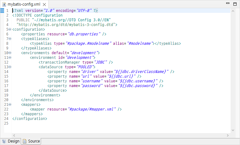 기본 파일명으로 생성하면 mybatis-config.xml, db.properties 2개의 파일입니다.