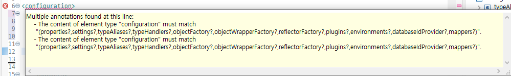 mybatis에서는 configuration xml에서 각 항목의 순서가 오류를 일으킬 수 있으니 확인하고 순서대로 입력해야 합니다.