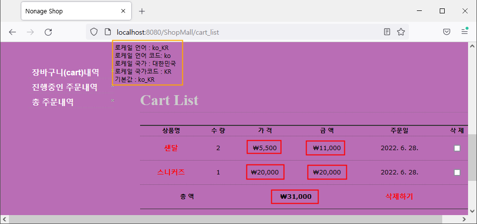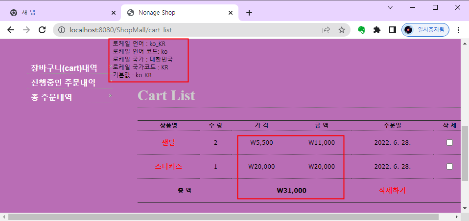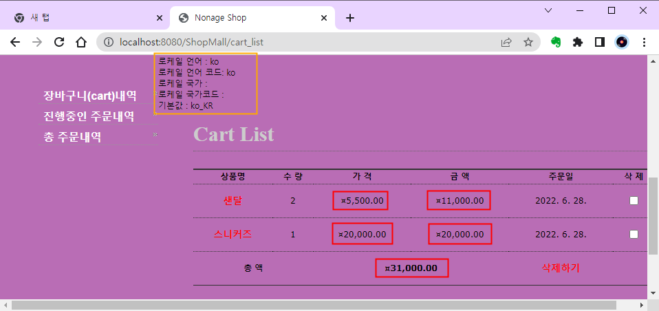크롬에서는 로케일 국가, 로케일 국가코드가 빈칸으로 나옵니다. 덕분에 금액 부분이 이상하게 표시됩니다.