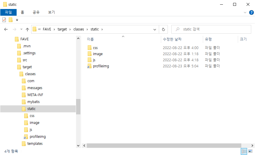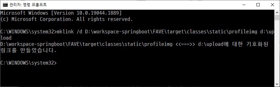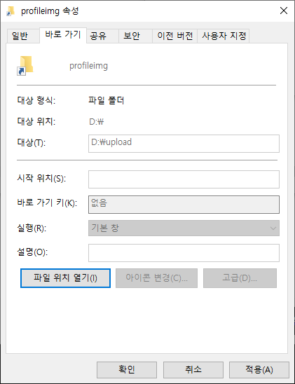 d:\upload에 profile 이미지를 업로드했고, 이를 참조하기 위해서 static 폴더에 심볼릭 링크를 profileimg라는 이름으로 생성했습니다.