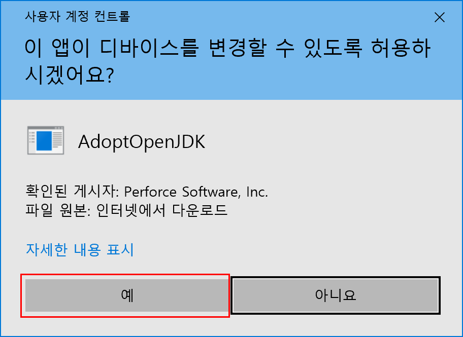 환경에 따라서는 사용자 계정 컨트롤이 표시되기도 합니다.
